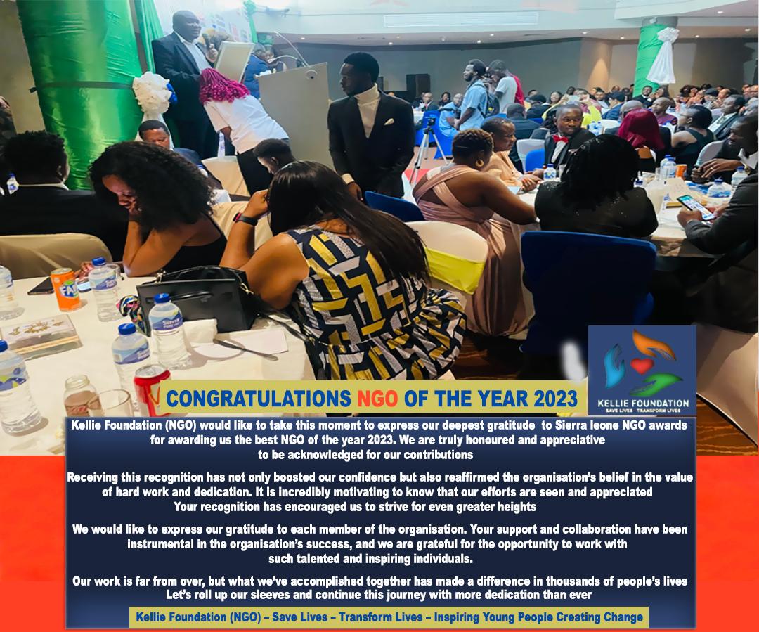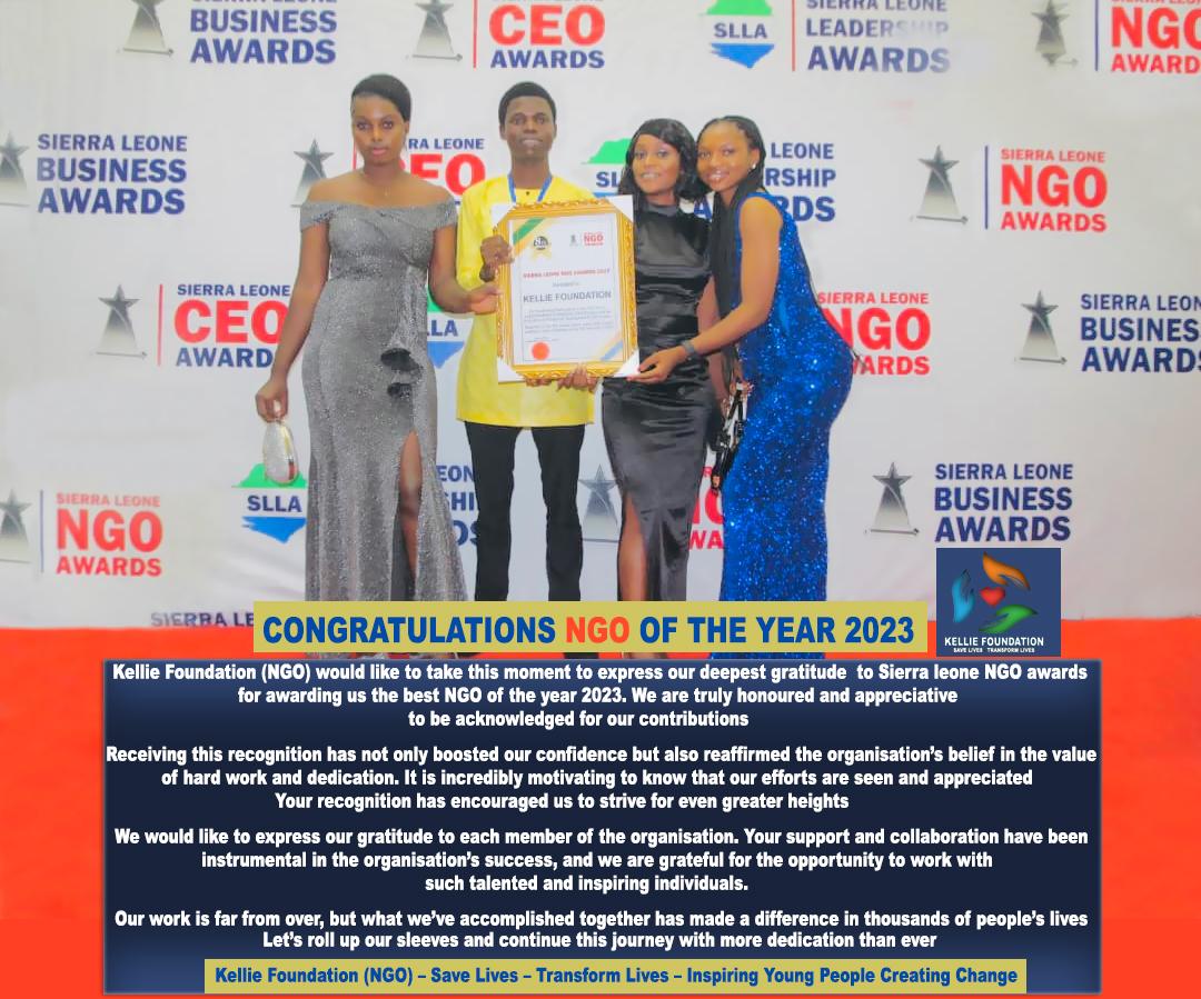 Expressing their gratitude, Elijah Kellie, CEO of Kellie Foundation, and Moses Kellie shared their appreciation for being acknowledged as the Best NGO of the year 2023. They conveyed their thanks to the Sierra Leone NGO Awards for this esteemed recognition, stating that it not only boosts the organization’s confidence but also validates the value of hard work and dedication.