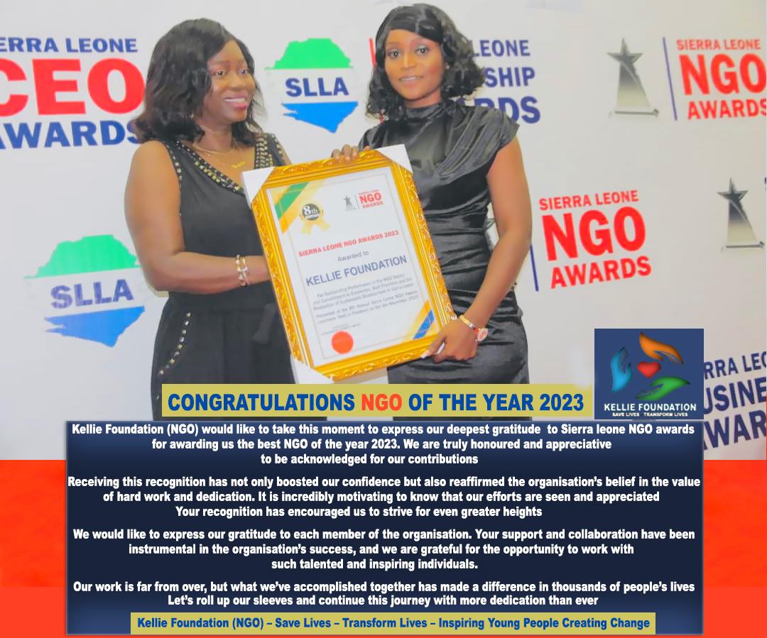 In a remarkable achievement, Kellie Foundation, one of Sierra Leone’s leading philanthropic NGOs, has been awarded the prestigious Best NGO Award 2023 by the Sierra Leone NGO Awards. The annual accolade recognizes the outstanding contributions of NGOs in the country.