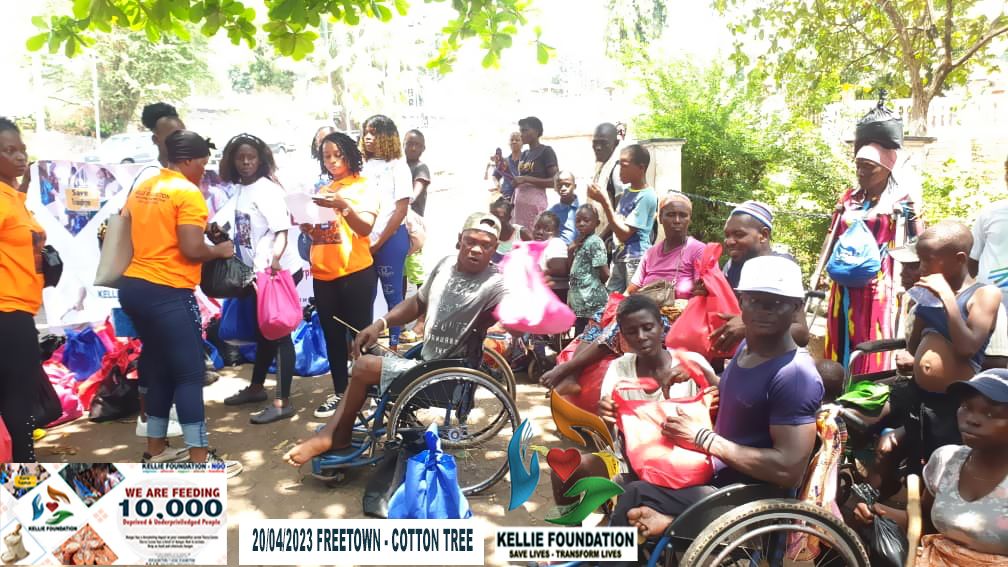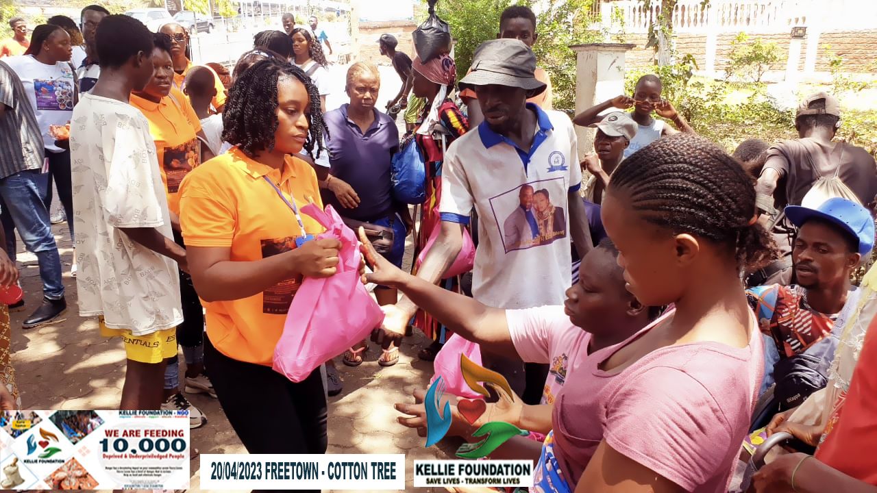 On Thursday, April 20th, 2023, the Kellie Foundation continued their flagship program, Operation Feed 10,000 deprived and underprivileged households, at Cotton-Tree in the center of Freetown.