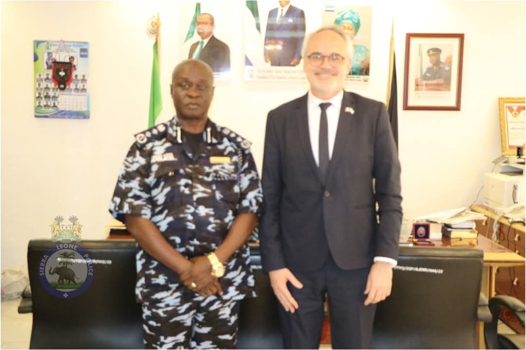 His Excellency Luc Briard, the French Ambassador to Sierra Leone, paid a courtesy visit to the Inspector General of Police (IGP), William Fayia Sellu, at the Police Headquarters on George Street.
