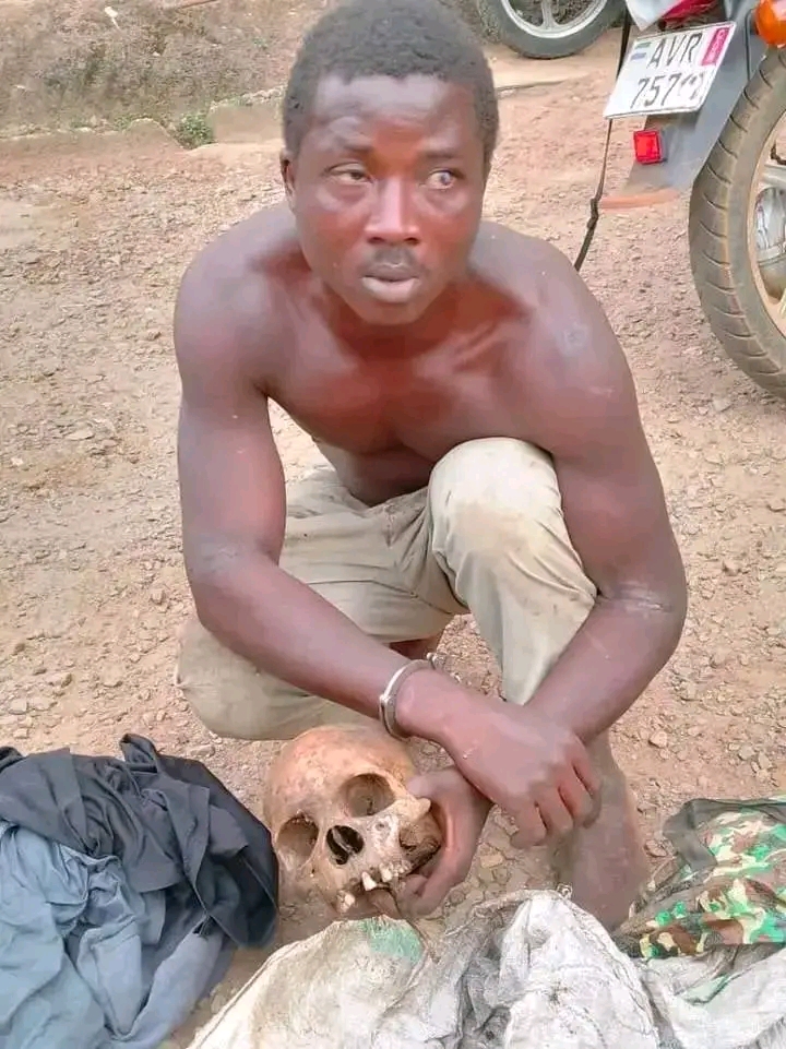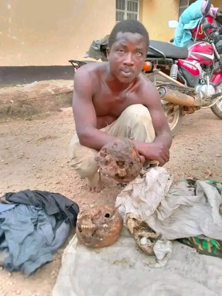 A man has been taken into police custody after allegedly exhuming a grave and removing four human heads, an incident that has shocked the local community.