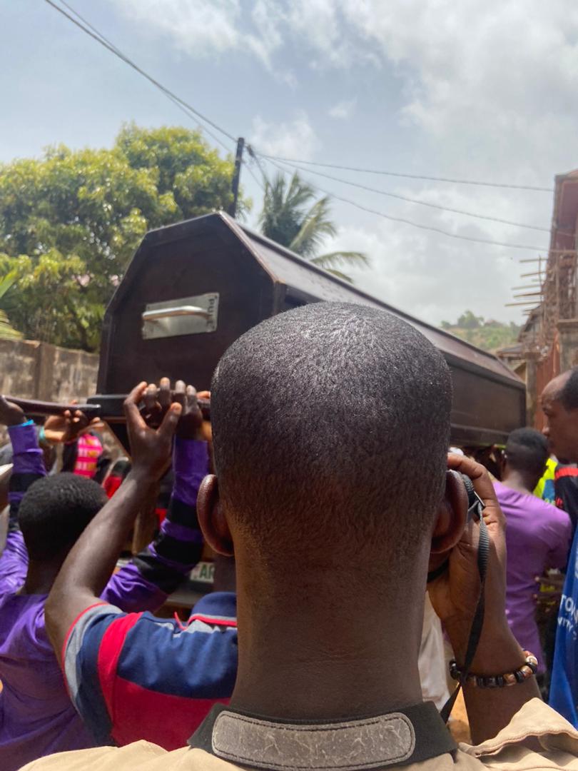 During the burial ceremony on Friday 3rd April 2024, an unfortunate incident occured where a lady was rescue by the police from angry youths of the community.