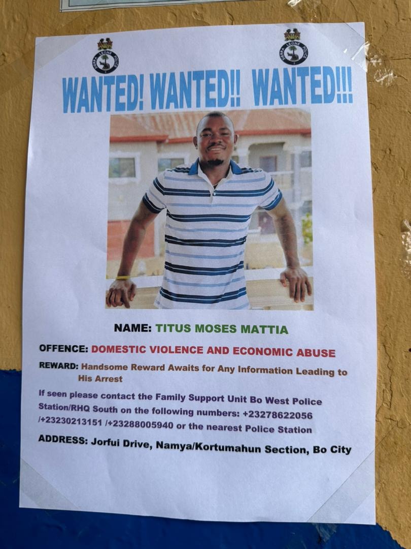 The Family Support Unit (FSU) of the Bo West Police Division has launched a manhunt and is urging the public to assist with any credible information that could lead to his arrest. A handsome reward is being offered to anyone who provides actionable leads.