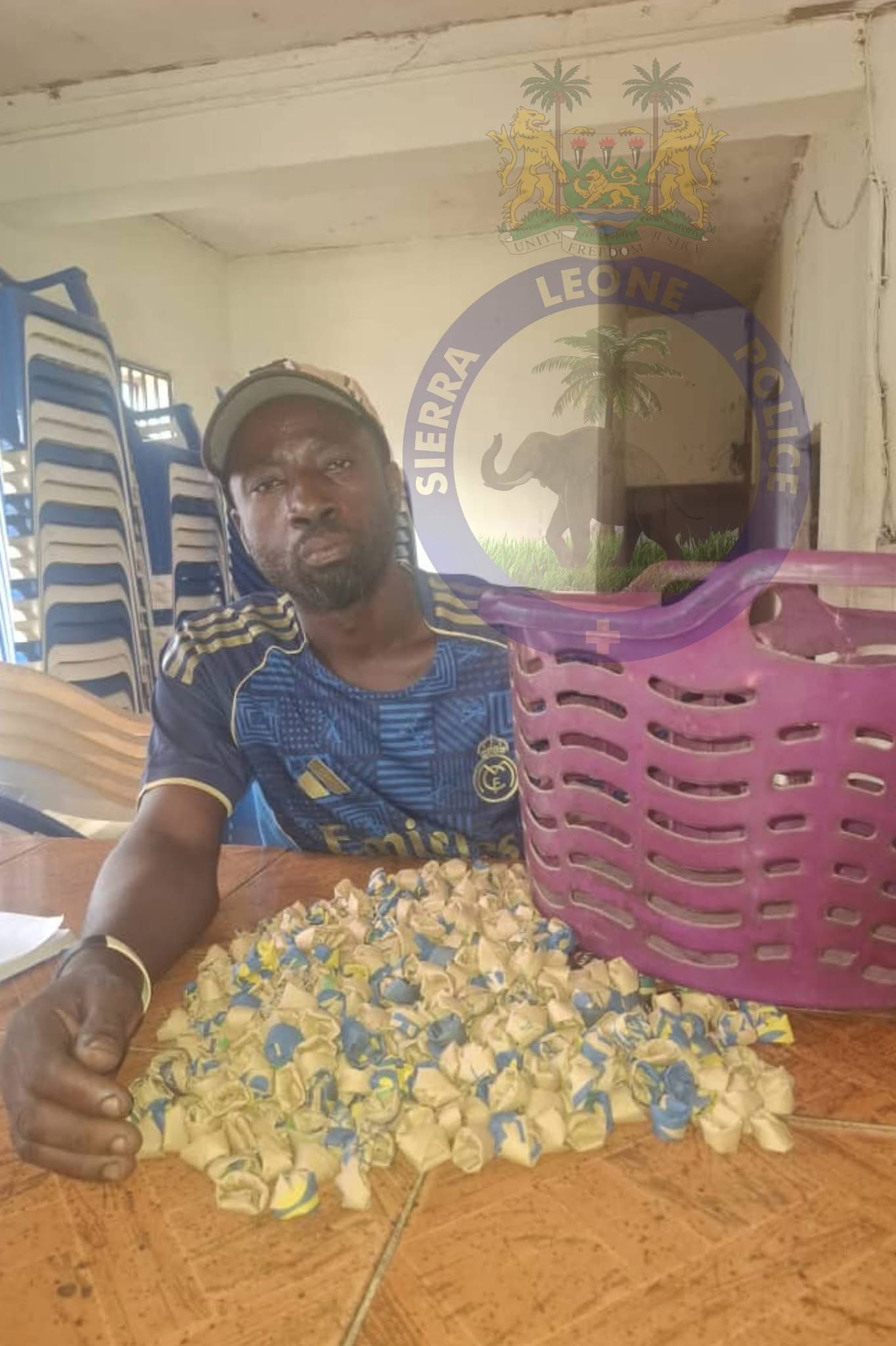Meanwhile, at Coconut Farm, officers arrested Alimamy Kamara of No. 4 Off Black Hall Road. Police said he was found in possession of fifty-four (54) sachets of a substance suspected to be Cannabis Sativa.