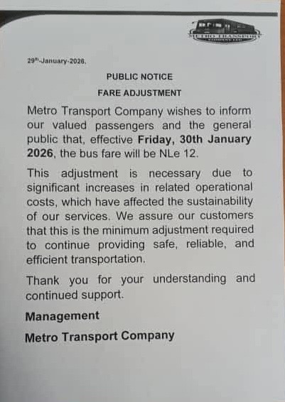 The Metro Transport Company, operators of Waka Fine buses, has announced an increase in bus fares from Le 8 to NLe 12, effective Friday, January 30, 2026.