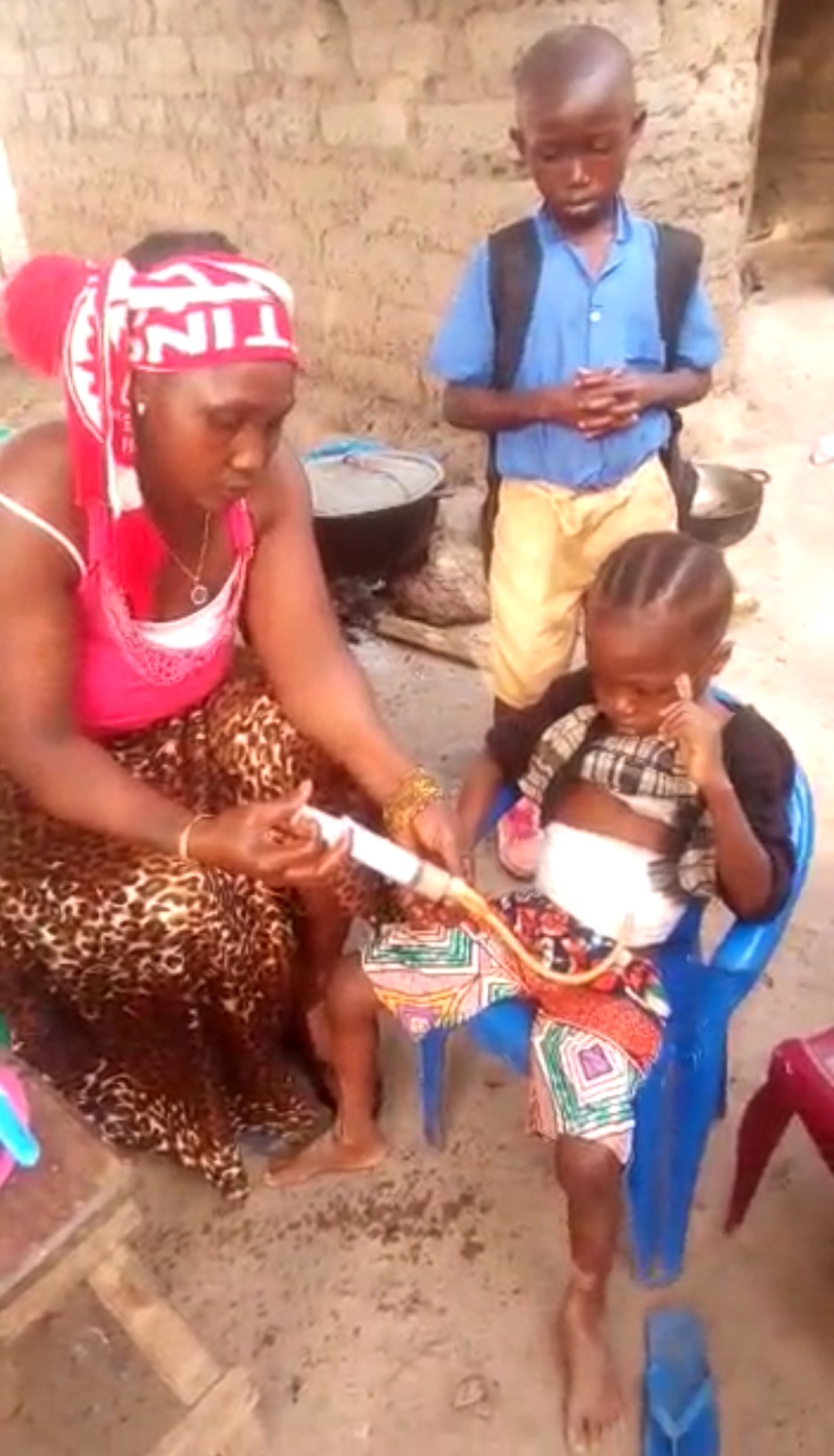 A Sierra Leonean girl who has lost her mother and feeds through syringe is crying for medical help from the public to go for treatment.