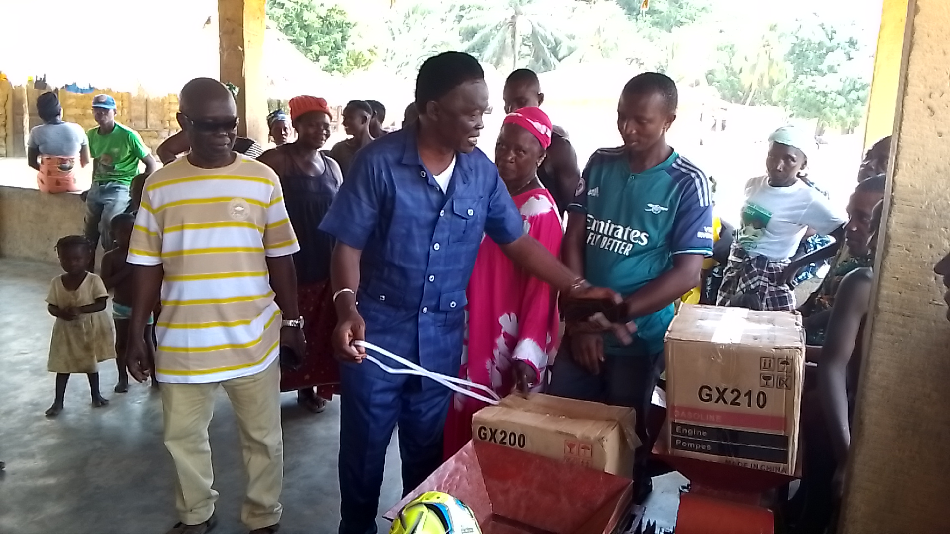 Hon. Alex Mattia Rogers, Member of Parliament representing Pujehun District, who is also the District’s Caucus Leader in parliament, took a significant step towards empowering women in agriculture by distributing eight Cassava Processing Machines to Kpanga Krim Chiefdom on April 13, 2024.