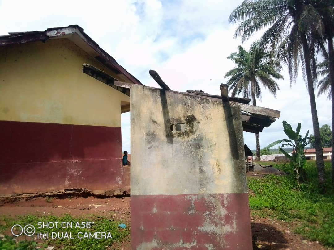 One of the oldest schools in Port Loko District, A.M.E. Primary School – Mange Bureh is in dilapidated condition with tattered roofs and structures.