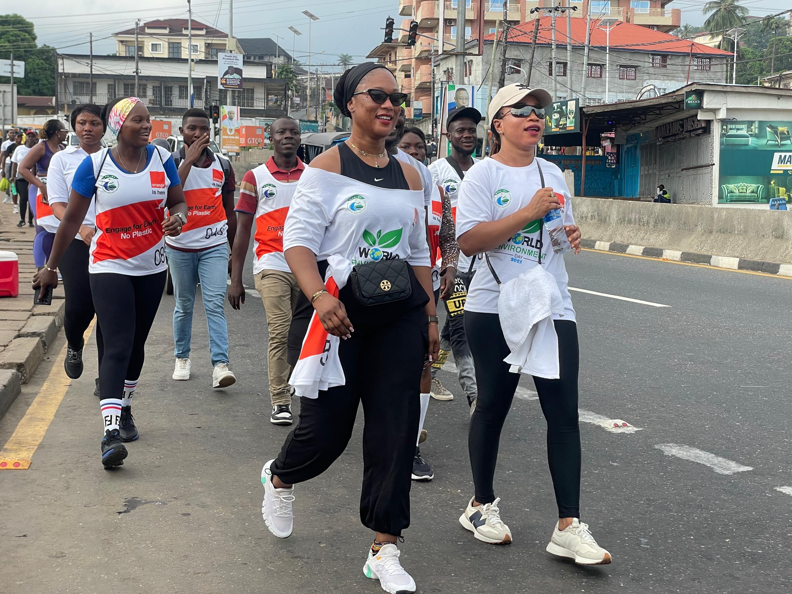 The event, held under the theme: “Engage for Earth: Say No to Plastic,” brought together hundreds of participants who started at Cotton Tree and ran or walked to the finish line at Kallon Car Park on Aberdeen Beach.