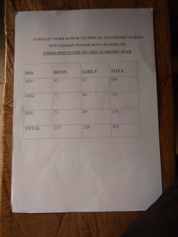 The school has grown in number over the years but there have been no improvement of building and other necessary facilities as compared to other schools in Freetown.