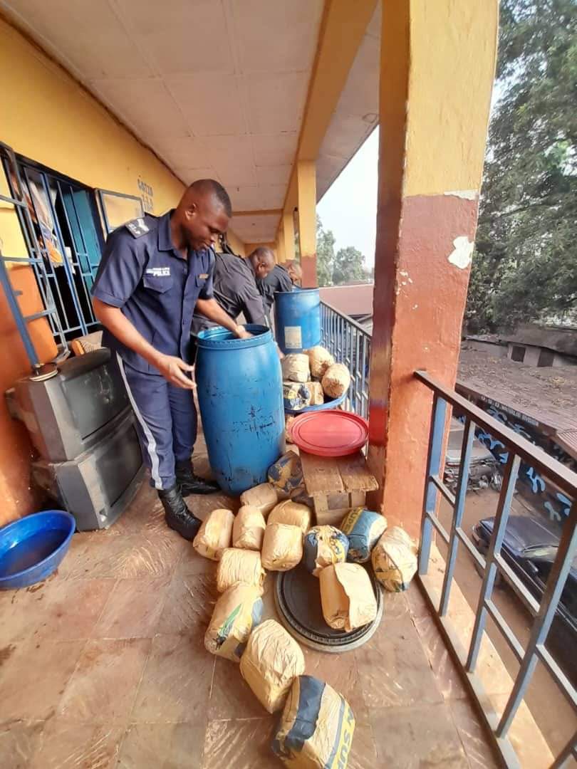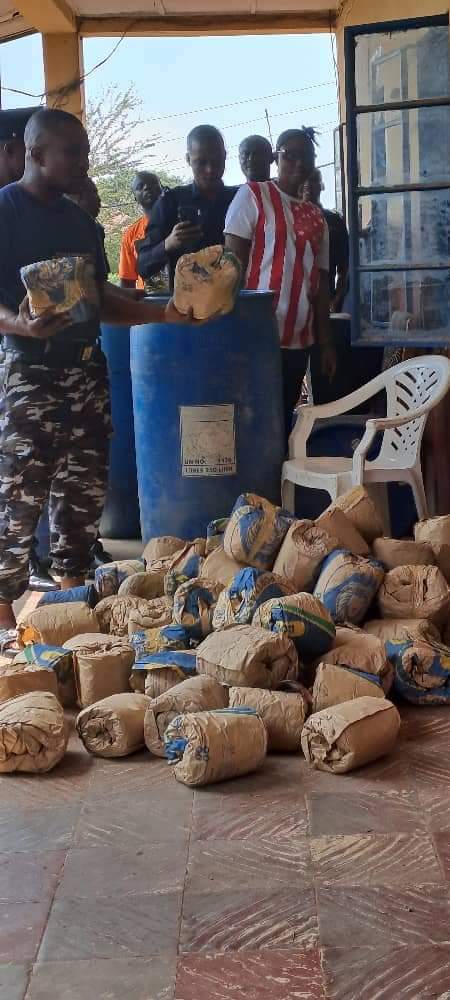 The Sierra Leone Police (SLP) have arrested eight young men in Waterloo on suspicion of Large Scale of Cannabis Sativa stashed in drums.