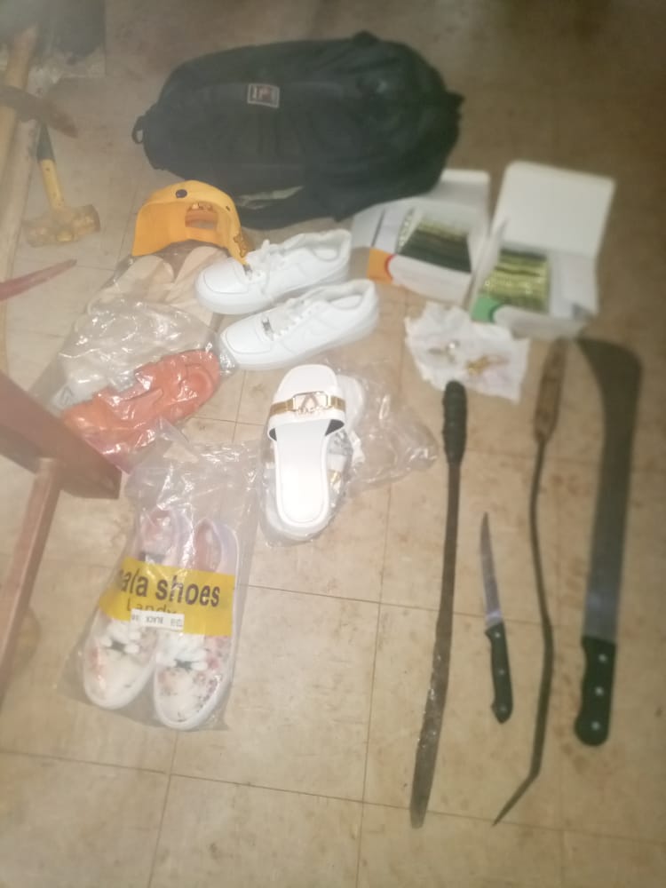 According to the Bo East Divisional Crime Officer Assistant Superintendent of Police Titus Vandi, the Investigation has currently retrieved from suspects items like two (2) sets of 32 inches plasma televisions, Android and button mobile phones claimed by complainants, quantities of free health care drugs and also Dangerous Offensive Weapons were all found in possession of suspects.