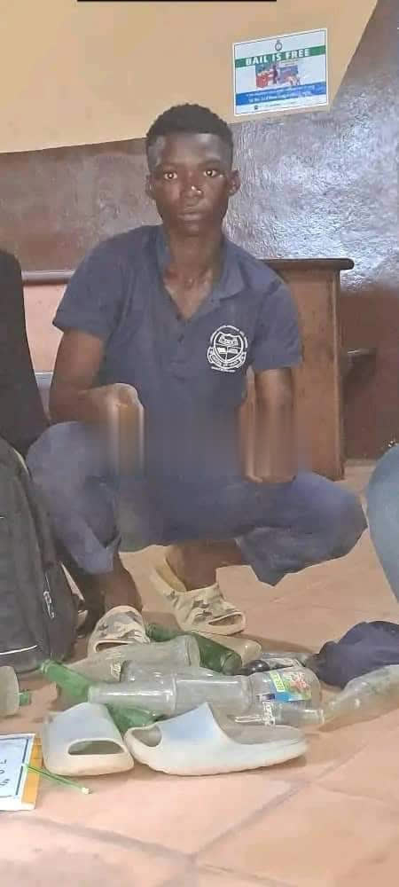Emmanuel is said to be in custody at the Waterloo Police Station after he was on 7th March 2023, arrested with a back-pack (pow-pow bag ) at Bassa Townfield, Waterloo, full of bottles, knives, and scissors meant to attack and injure pupils of Rural Academy Secondary School, Waterloo.