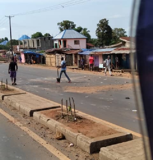 Angry youths barricaded; burning tyres middle of the road, preventing all motor vehicles from passing. But through the help of the police, situation is under control.