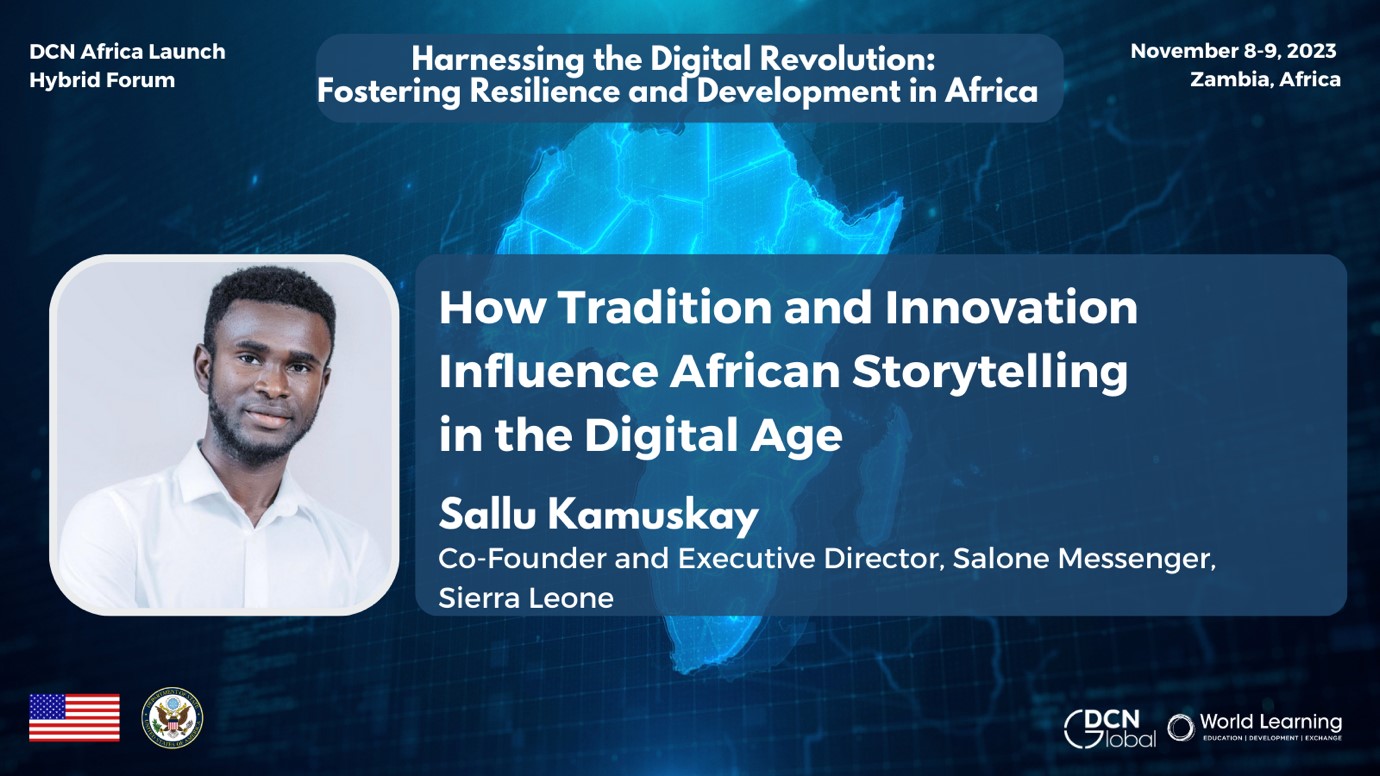 Founder and Executive Director of Salone Messenger, Sierra Leonean communication strategist, fixer, blogger, youth organiser, event manager, spokesperson, and public relations expert Sallu Kamuskay will be participating on a panel discussion on “How Tradition and Innovation Influence African Storytelling in the Digital Age organized by the Digital Communication Network (DCN) Global and World Learning for The upcoming Digital Communication Network Global (DCN) event, scheduled for November 8-9, 2023 in Zambia, Africa.