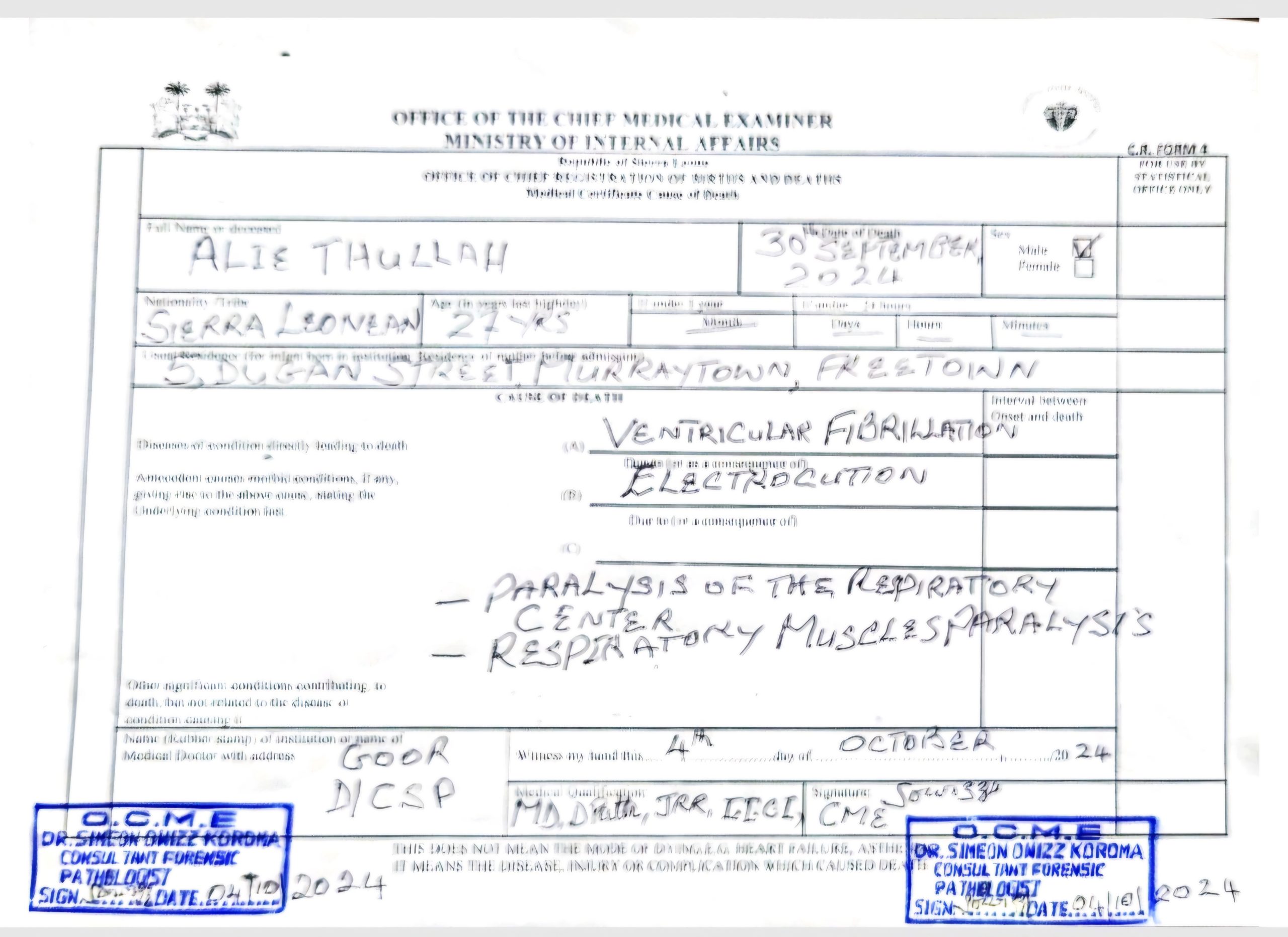 The outcome of the autopsy on the remains of Alie Thullah, a third-year student at the Institute of Public Administration and Management (IPAM) and a professional technician employed by SATCOM, has finally resolved the mystery surrounding his death at the HBS H. BAYDON & SONS business establishment on Wilberforce Street, Freetown.