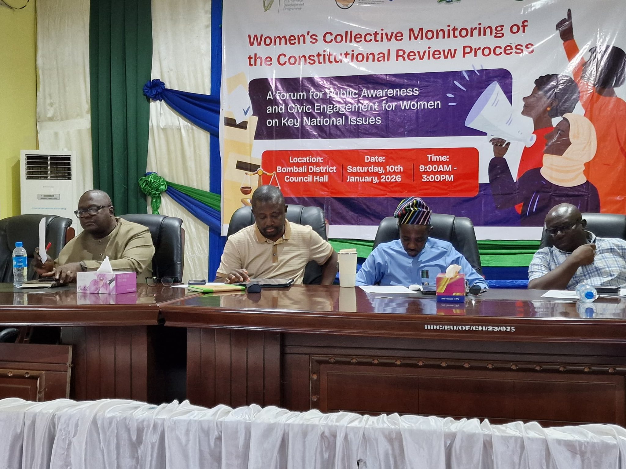 The public forum was organised in collaboration with the Office of the Attorney General and Minister of Justice, the Ministry of Information and Civic Education, and the Ministry of Gender and Children’s Affairs. Speaking at the event, Attorney General and Minister of Justice Alpha Sesay Esq. underscored the need for explicit constitutional provisions on gender equality.