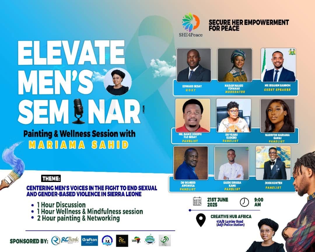 The seminar, titled “Elevate Men’s Voices,” was led by SHE4Peace founder, Mariama Sahid. It aimed to create a platform for men to share their perspectives and experiences, emphasizing the importance of their involvement in addressing these critical issues in Sierra Leone.