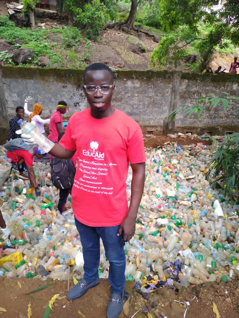 Soon after graduating from IPAM- USL, Organiser continued his teaching career in EducAid Sierra Leone Lumley. As a Coordinator for Green School Project, he did a field trip to the Beach where he met fishermen pulled up a lot plastic bottles in their fishing net instead of fish. He realised that, plastic bottles are destroying the Ecosystem. He got the inspiration to recycle the plastic bottles and use them to construct homes, bars, etc.