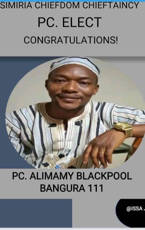 Alimamy Blackpool Bangura, the son of the Late Paramount Chief Alimamy Bangura II was declared the new Paramount Chief of Simiria Chiefdom after a tense runoff against his main challenger, Biankay Kaira Sorie Bangura.