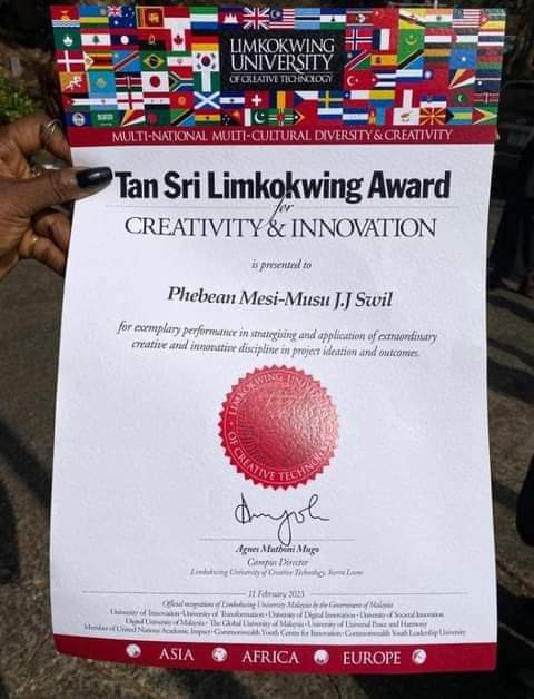 Popular Sierra Leonena TV Personality, Phebean Swill on Saturday 11 February 2023 graduated with an Honours Degree (First Class) – in Media and Journalism at the Limkokwing University of Creative Technology and was a Recipient of the Tan Sri Limkokwing for Creativity and Innovation.