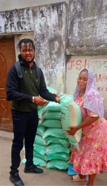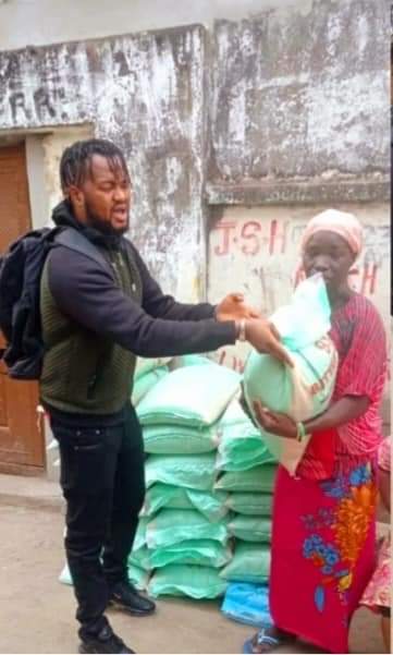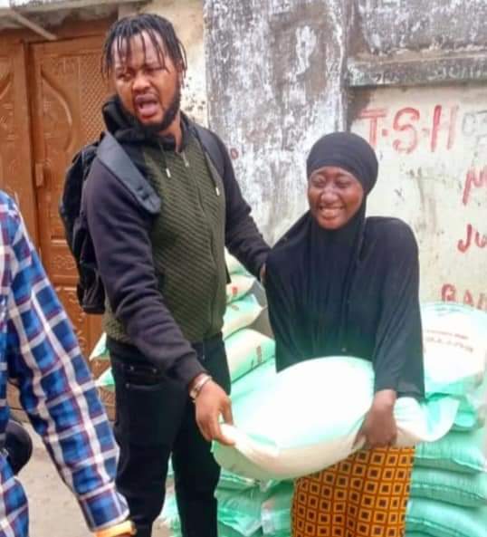 Ex-Housemate Salone contestant, Alusine Kamara popularly known as “Timberland of Jenkin Street” on Wednesday, 5 April 2023 donated 26 bags of rice to the people of Savage Square in the Fourah Bay community.