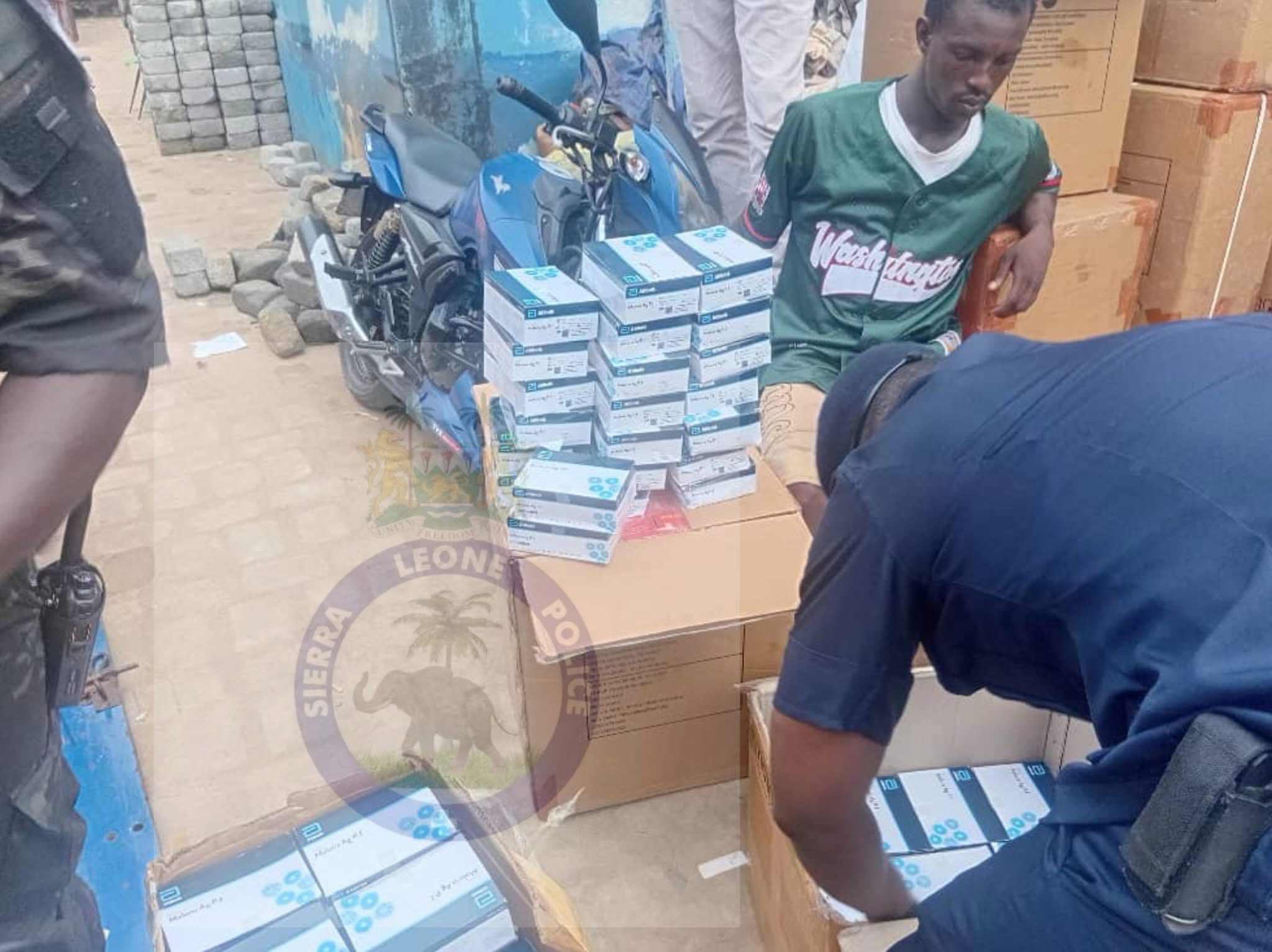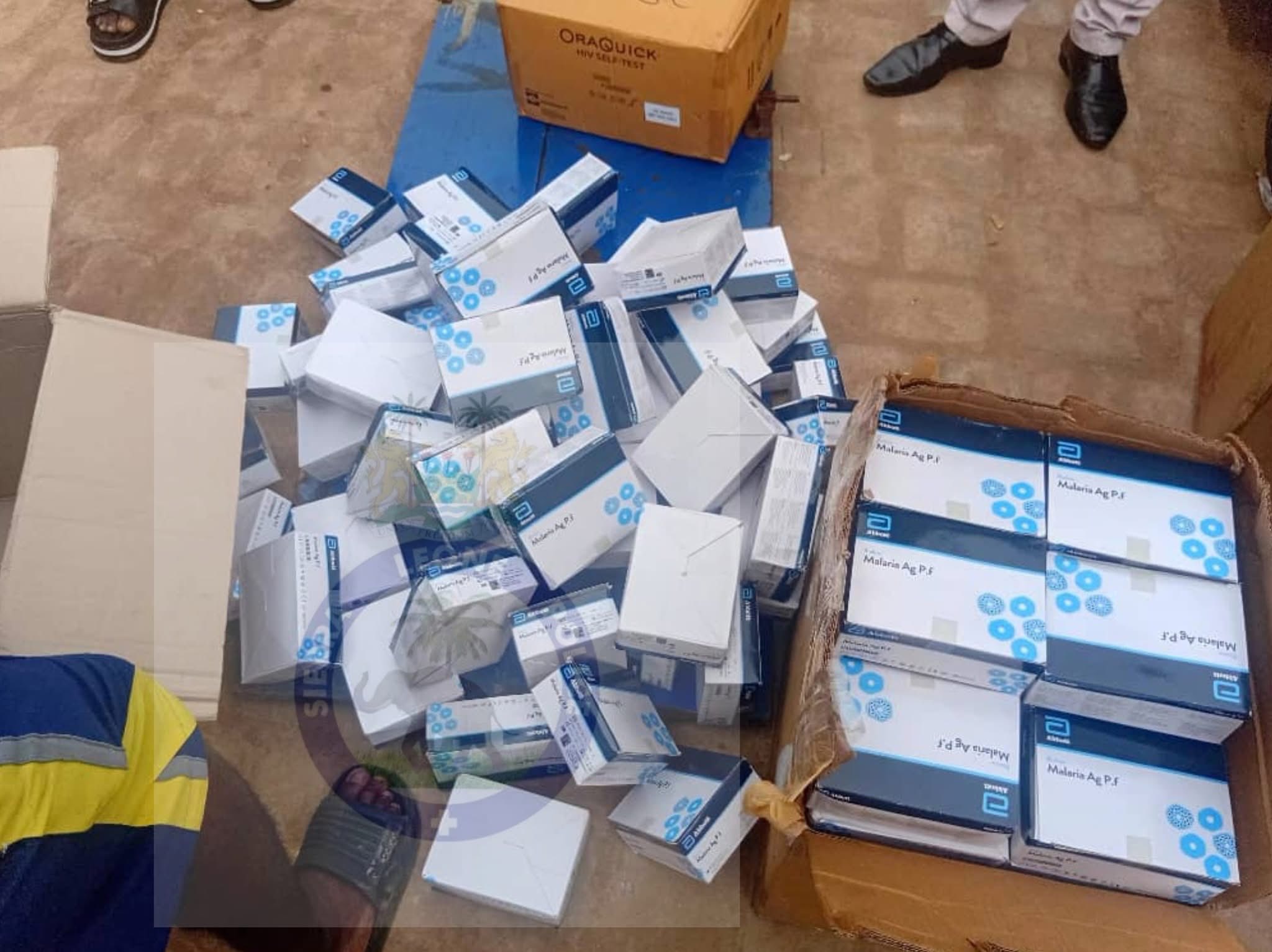 Two residents of K-Step, Calaba Town — Mohamed Kamara and Osman Sako — have been taken into police custody after they were allegedly found in possession of free healthcare materials, including HIV test kits, HCV test kits, malaria test kits, and other assorted medical supplies.