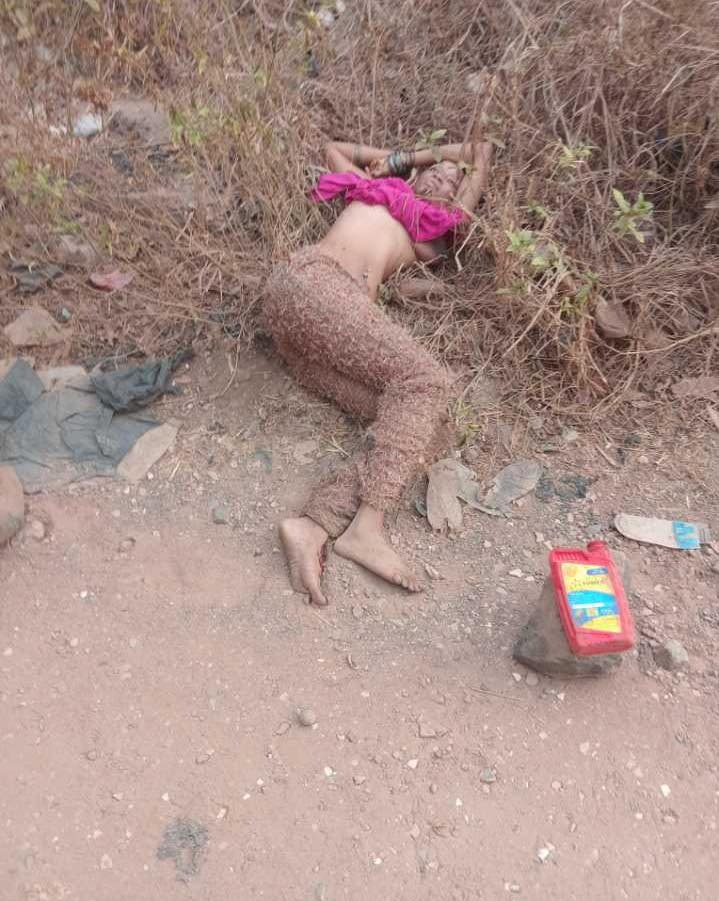 The victim lay on a nearby bush with a move-cropped top and brown leggings with bare foot.