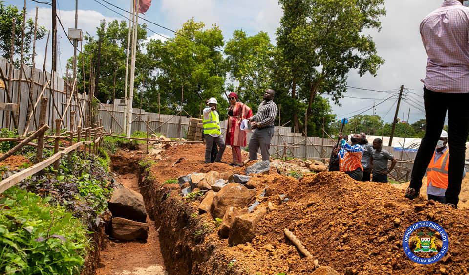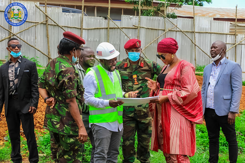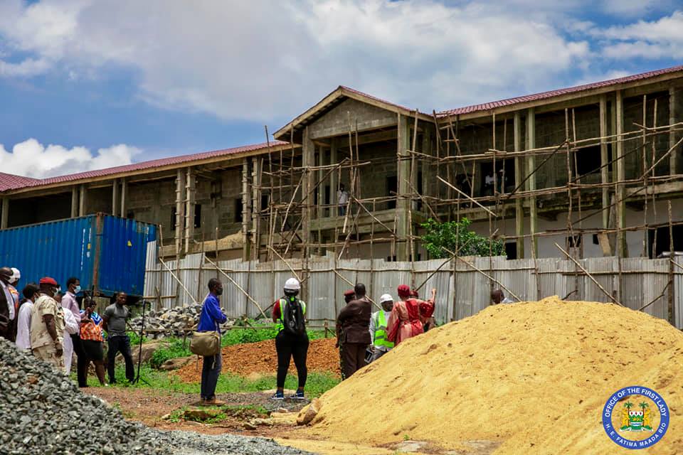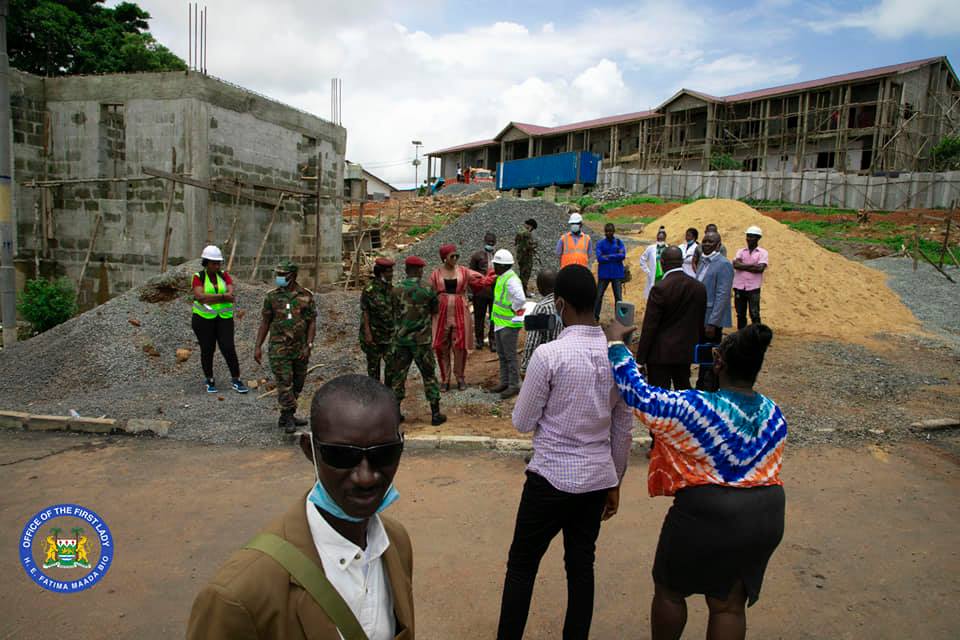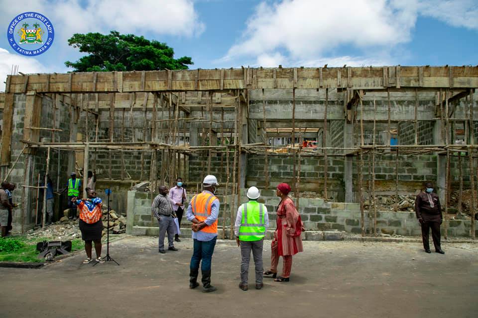 The first Lady of Sierra Leone, Her Excellency Madam Fatima Maada Bio on Tuesday, 24th August 2021 made an on the spot visit to the construction site of the 100-bed paediatric hospital, the President is constructing @ 34 Military Hospital Wilberforce.