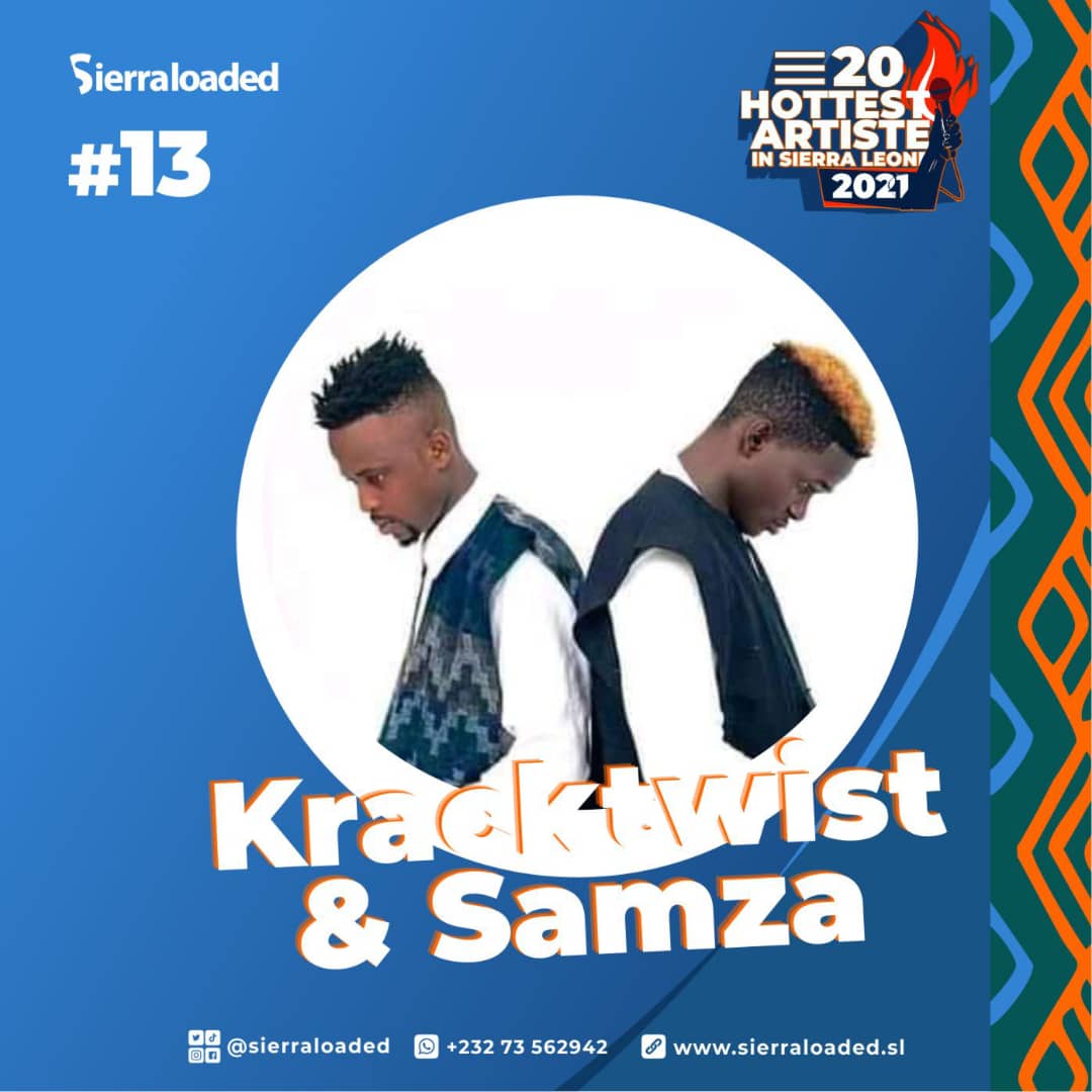 Ishmael Kamara (Kracktwist) & Samza Serry (Samza) is no doubt one of Sierra Leone’s finest musical duo whose rising influence in the music scene cannot be swept under the carpet.
