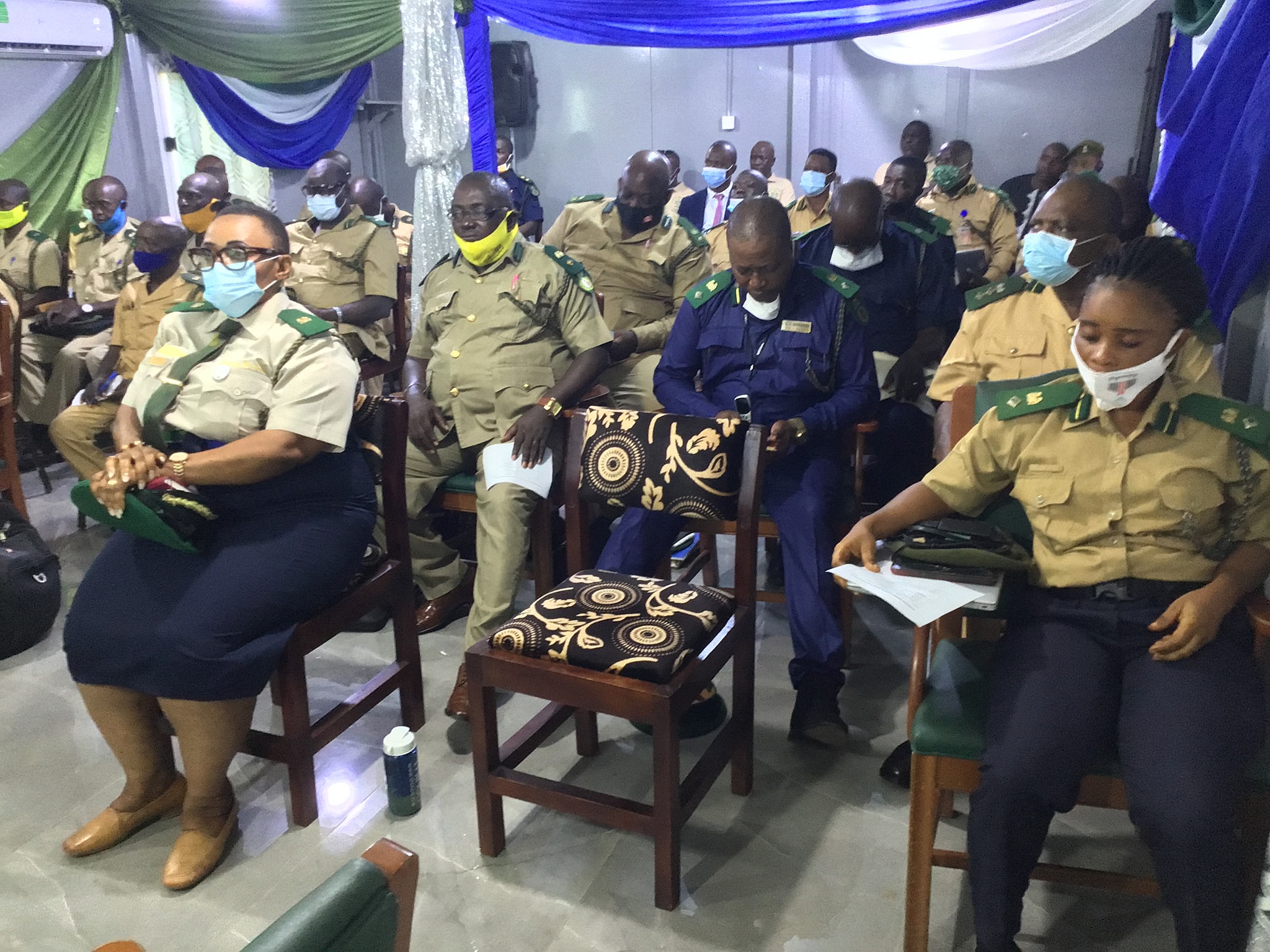 Twenty senior ranking officers of the Sierra Leone Correctional Service take part in a refresher training organised by the administration of the Sierra Leone Correctional Service and facilitated by the Technical Support Team Lead seconded to the SLCS from the Republic of Sierra Leone Armed Forces (RSLAF).