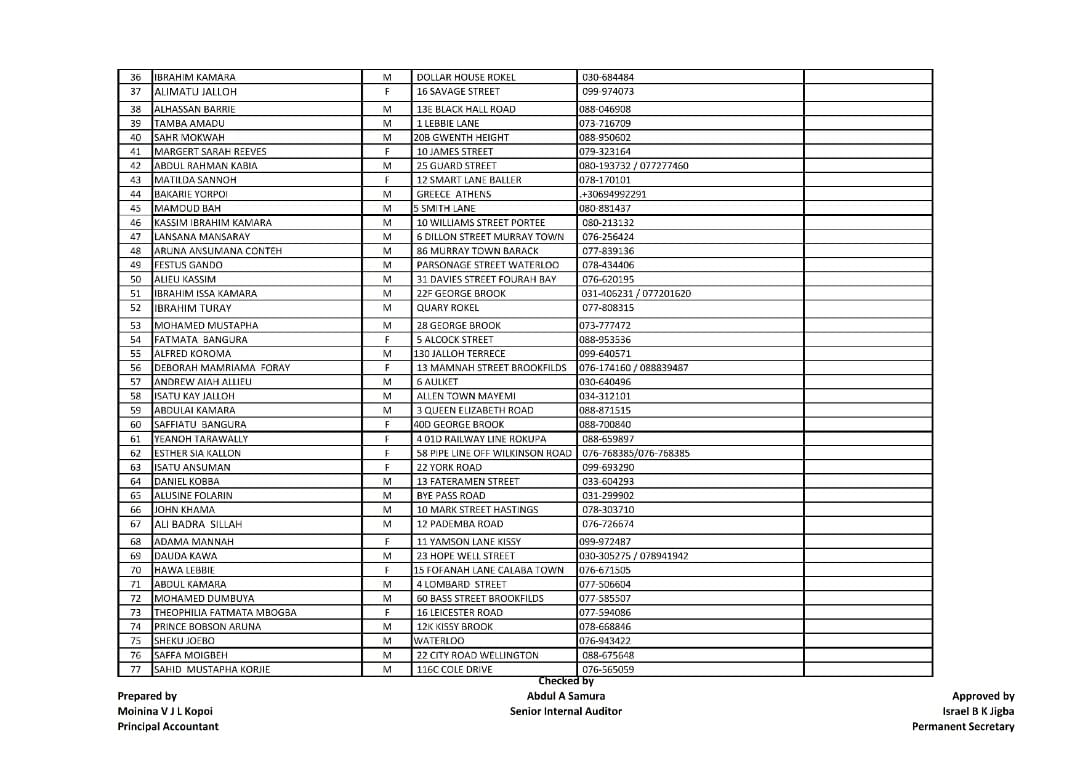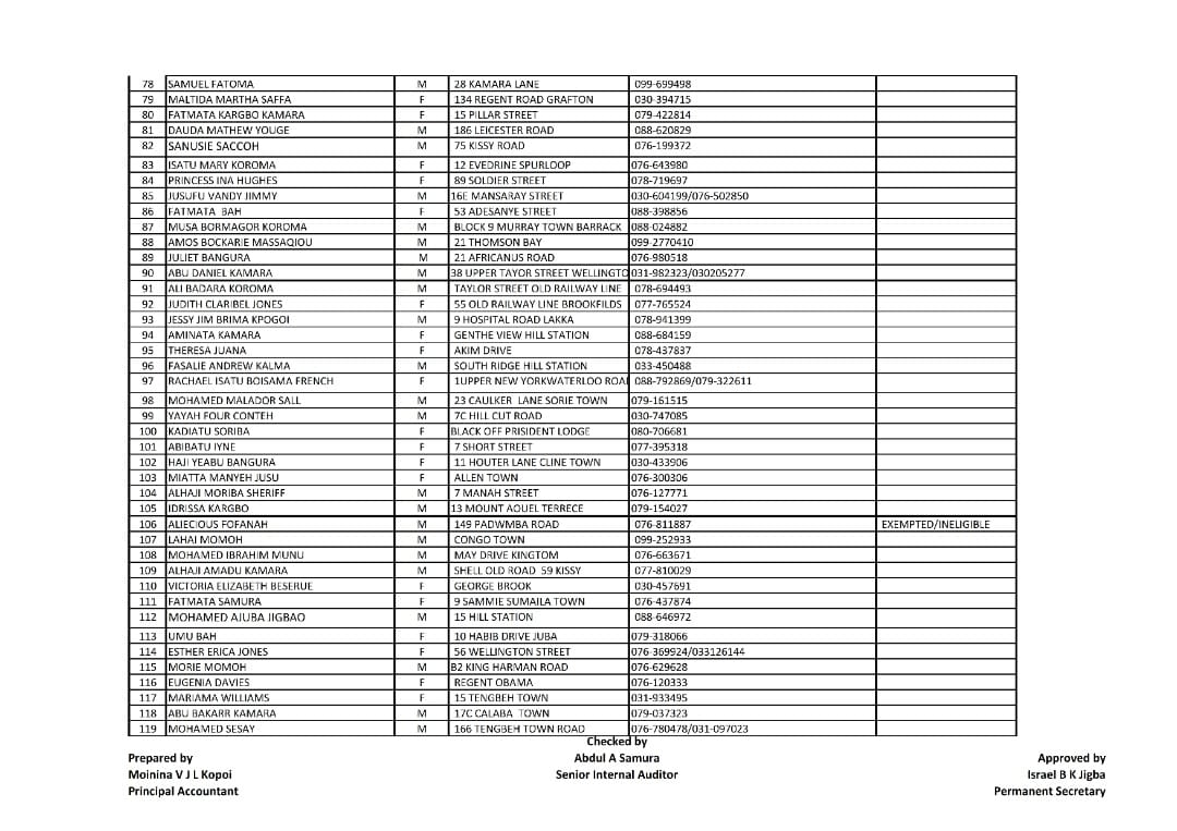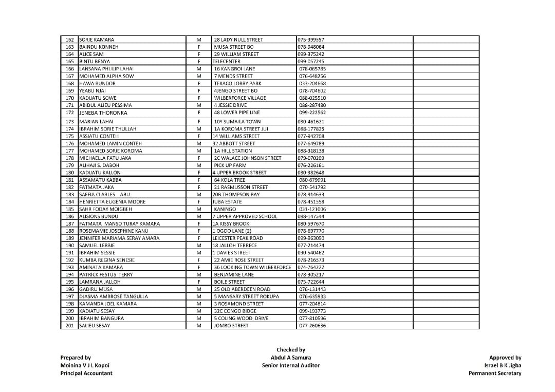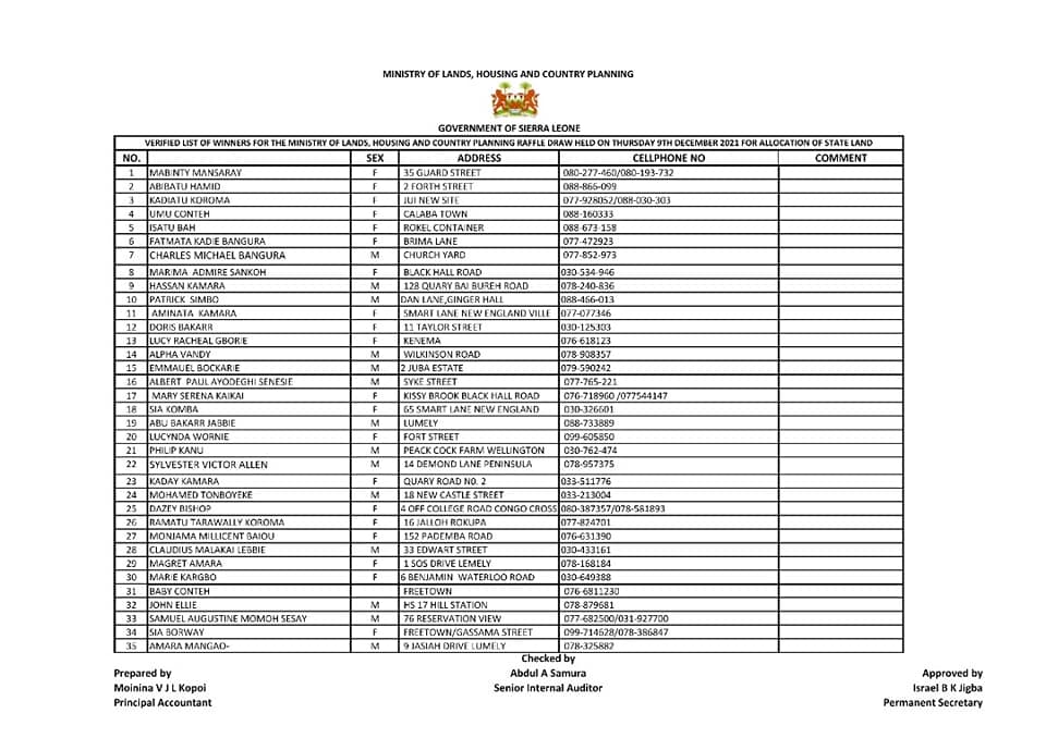 The Ministry of Lands, Housing and Country Planning has compiled and gazetted the names of 200 Sierra Leoneans who were selected in a public raffle draw for allocation of State Land situated at Allen Town in Freetown.