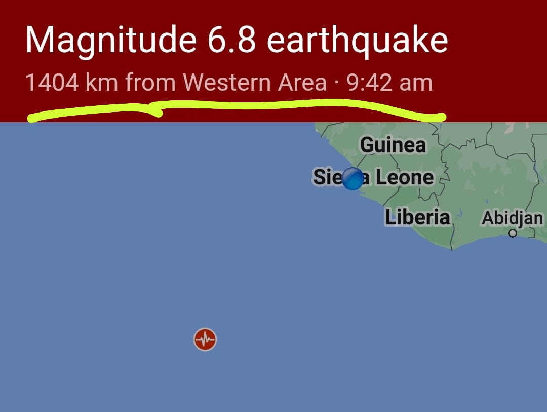 According to the NCS, the earthquake occurred at around 3:13 pm Sunday off the coast of Sierra Leone.