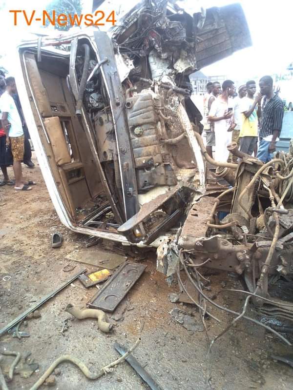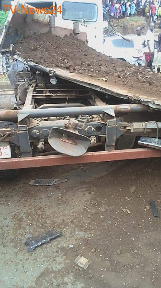 “The truck that was coming from this lane was speeding when all of a sudden, one of its front tires burst, and it crossed into the other lane and crashed with a delivery truck heading to town, to deliver dirt,” Brima Kamara, the eyewitness, says.