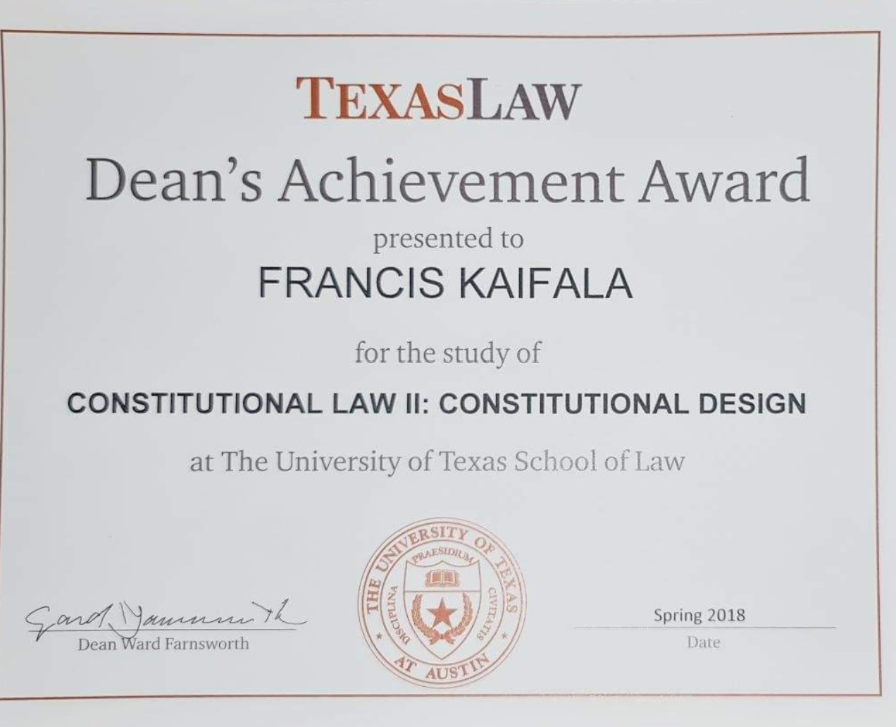 And in the US, as a Fulbright Scholar I finished with this beautiful recognition for Mastery of Constitutional Law and Design (among others) in my last masters’ Degree to crown it all.