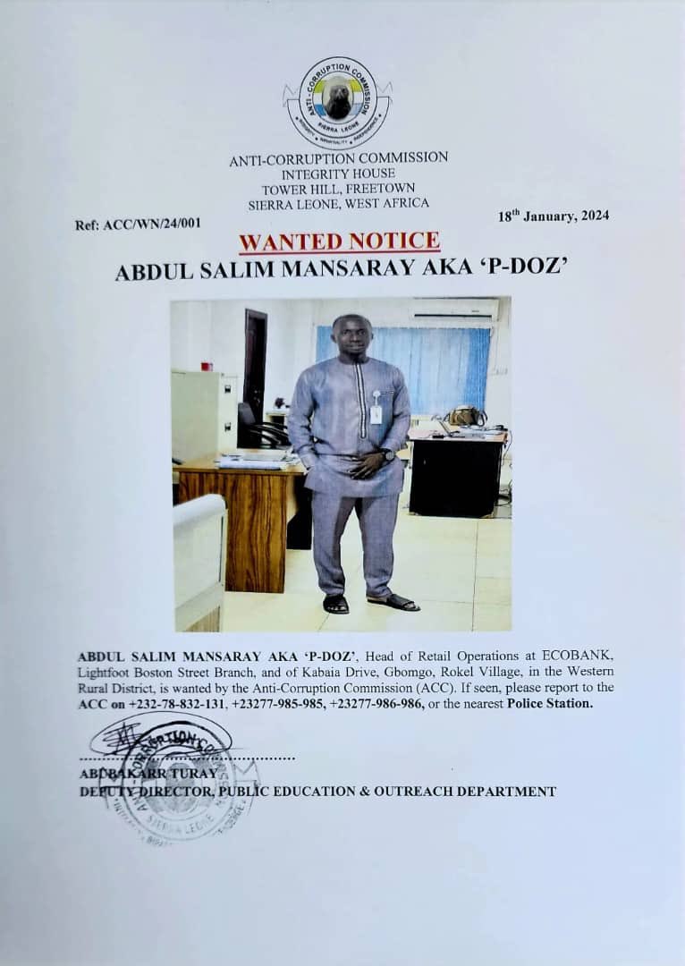 This development signifies a determined stance against corruption in Sierra Leone, and the ACC’s proactive approach demonstrates the importance of collective efforts in maintaining the integrity of the country’s financial systems. The public’s cooperation is pivotal in bringing these individuals to justice and safeguarding the nation’s resources from illicit activities.