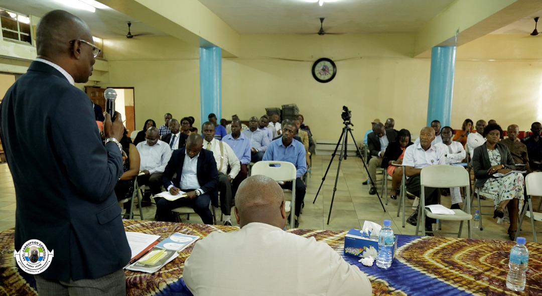 The Deputy Commissioner of the ACC, Augustine Foday Ngobie addressed members of the Integrity Management Committees (IMCs) of various MDAs on Thursday, 27th October 2022 during a compliance validation meeting, at the St. George’s Cathedral Hall, 3 Gloucester Street, Freetown.