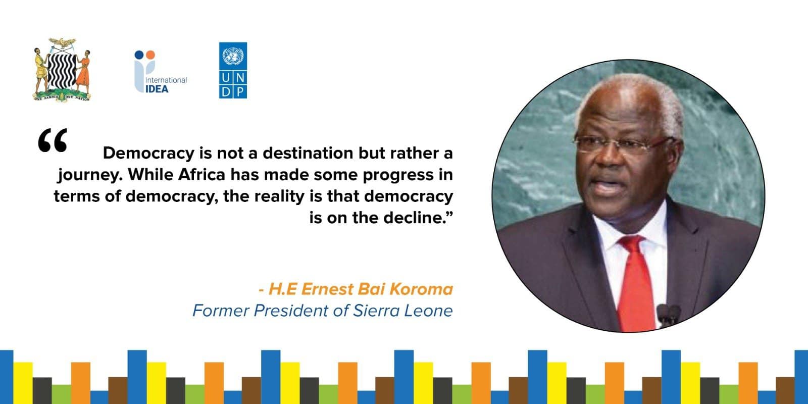 ‘Thank you for this very warm welcome to me and my delegation- UNDP and IDEA. I feel at home coming to Zambia more so that I’ve been accorded the highest honour,” said former President Koroma, in responding to his host.