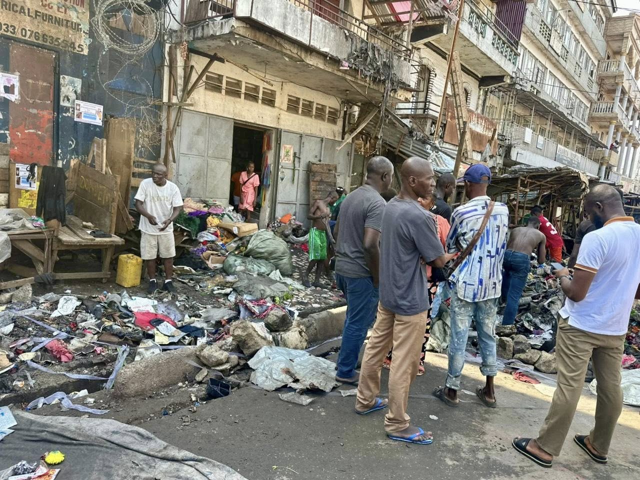 The Mayor of Freetown, Yvonne Aki-Sawyerr, on Monday, 9 February, visited ECOWAS Street to assess the damage caused by a devastating fire that swept through the area the previous day, destroying several shops and business centers along one of the city’s busiest commercial corridors.