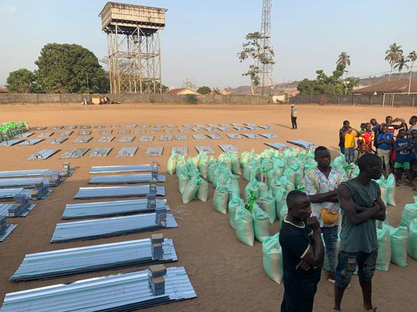 The NDMA also visited Lunsar Township, where a total of 66 houses were destroyed by a heavy windstorm affecting 226 households and 10 public facilities which include 6 Schools, 1 Community Center, 1 Church and 1 Vocational Centre. The Agency distributed a bag of 50kg of rice, jerry cans, soap, blankets, vegetable cooking oil and rubber buckets to each of the 226 households and further provided 5 bundles of zinc, 5 packets of roofing nails, and 5 packets of 4 and 3 inches to each of the 66 house owners (landlords) while each of the 10 public facilities received 10 bundles of zinc, 10 packets of roofing nails and 10 packets of 4 and 3 inches nails to cushion the effect and help them rebuild.