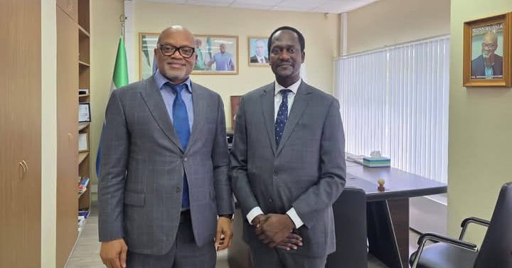 Senegal’s Ambassador to the Russian Federation, His Excellency Ambassador Stephan Sylvain Sambou, paid a courtesy call on His Excellency Ambassador Mohamed Yongawo, Sierra Leone’s Ambassador to the Russian Federation and Vice Dean of African Ambassadors in Moscow, on April 30, 2025.