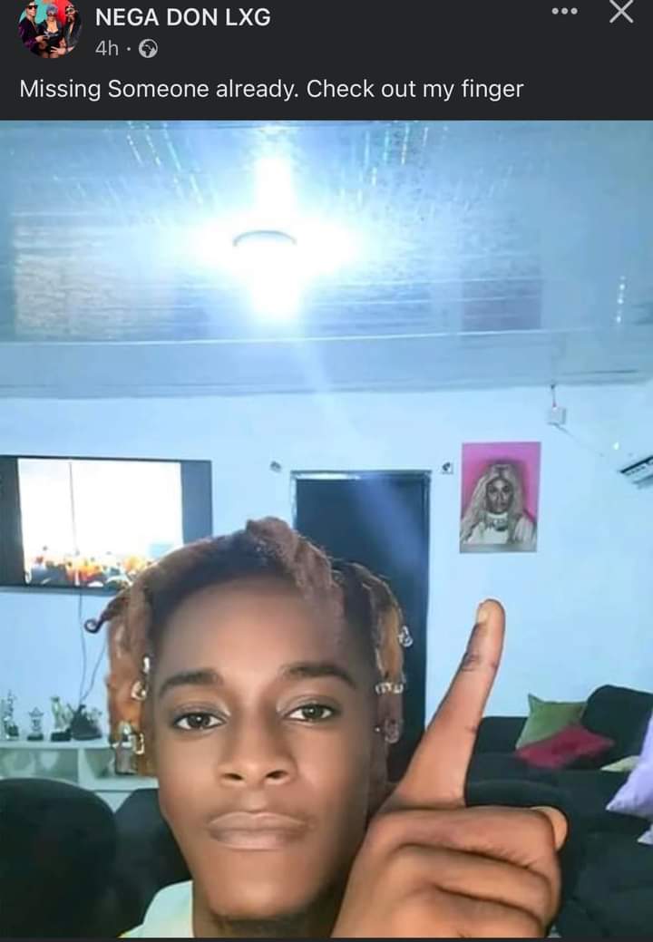 Amidst the cheating allegation by his wife pretty S, Nega Don In a post on Social media has expressed that he is missing someone already whilst pointing to a picture of his wife.