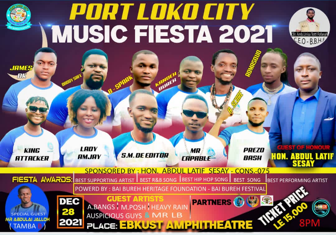 The Bai Bureh Heritage Foundation has released final list of artistes that will be performing at the Port Loko City Music Fiesta 2021 slated on 28th December, 2021 at the EBKUST Amphitheatre.