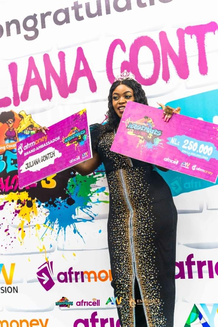 “We promised that our winner will be taken on a vacation trip to Dubai, that has been fulfilled, and we are here to also fulfill another promise, that is to deliver the star prize of Le 250,000 to the Housemates Salone Season 3 winner Juliana Conteh, popularly known as Julie Tombo,” he noted.