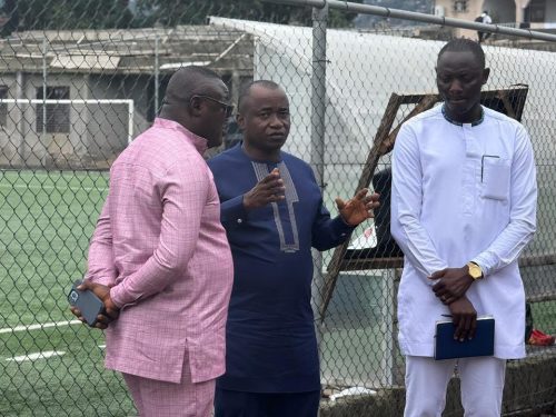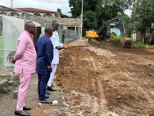 The newly elected President of the Sierra Leone Football Association (SLFA), Babadi Kamara, visited the SLFA Secretariat to inspect ongoing maintenance work, including the installation of a new drainage system.