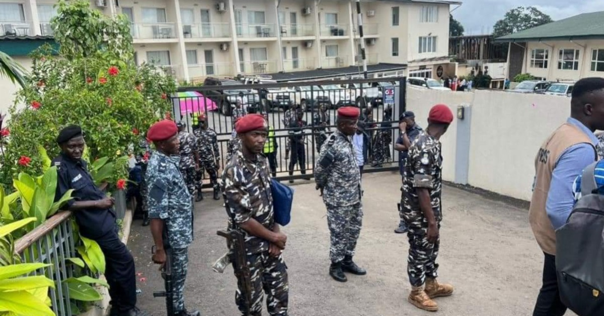 There is heavy police presence here and they’re not allowing anyone to access the premises of the hotel.