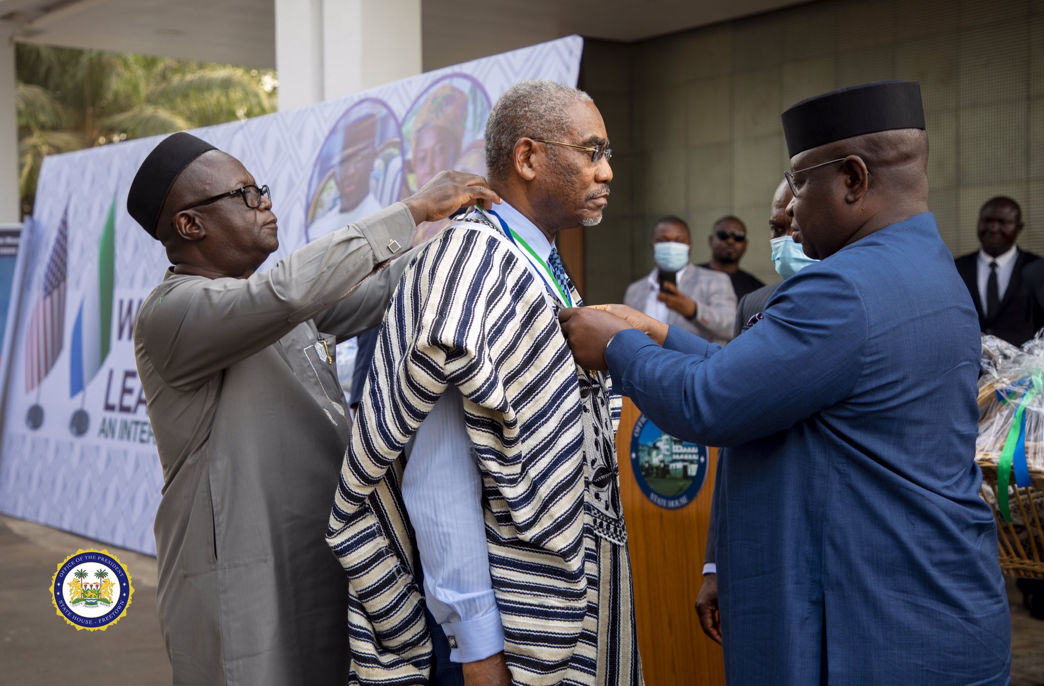 During their two-day visit, President Bio crowned Congressman Gregory Meeks as Paramount Chief of the Republic of Sierra Leone at a short ceremony on Tuesday and later addressed them at a dinner organised in their honour at the Presidential Lodge at Hill Station.