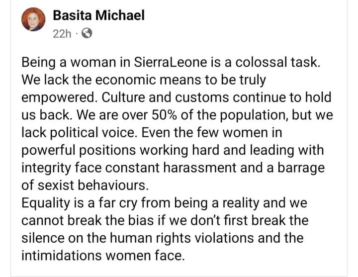 Former Sierra Leone Bar Association President Basita Micheal, has described what a huge task it is to being a woman in Sierra Leone.