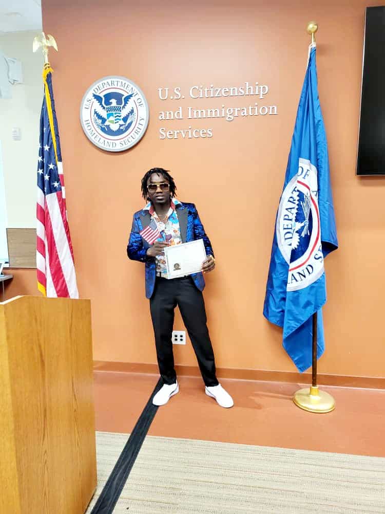 This news came out with the celebrity sharing pictures of himself on social media holding his certificate of citizenship of the United States of America. Gaining the citizenship in the US is differ from many parts of the world and it is a dream to many to receive such good news as an American Visa talk less of an American Green Card. After has been granted his certificate of citizenship of the United States of America and obtaining his citizenship-status, he is now a dual citizen of Sierra Leone and USA.