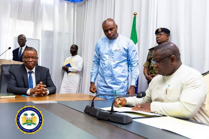 President Julius Maada Bio has presided over the judicial oath-taking ceremony of Abdulai Masiyambay Bangura, Esq., who was recently appointed as Judge of the Supreme Court of Sierra Leone under the Constitution of Sierra Leone after he was approved by the House of Parliament.